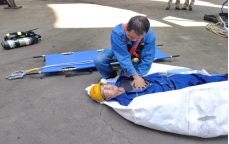 5.31日上午10時(shí)生產(chǎn)部接到有限空間煤氣中毒事故報告,在燒結一期濕法由于煙道檢修,有一名工人煤氣中毒后暈倒。生產(chǎn)部馬上啟動(dòng)應急救援,10:10分兩名救援隊員攜帶擔架、急救藥箱、空氣呼吸機等器材進(jìn)入演練場(chǎng)地,經(jīng)過(guò)現場(chǎng)查看,受傷人員輕度昏迷,救援隊員將受傷人員抬在擔架上,轉移至安全場(chǎng)所進(jìn)行人工呼吸,10:20受傷人員恢復意識。