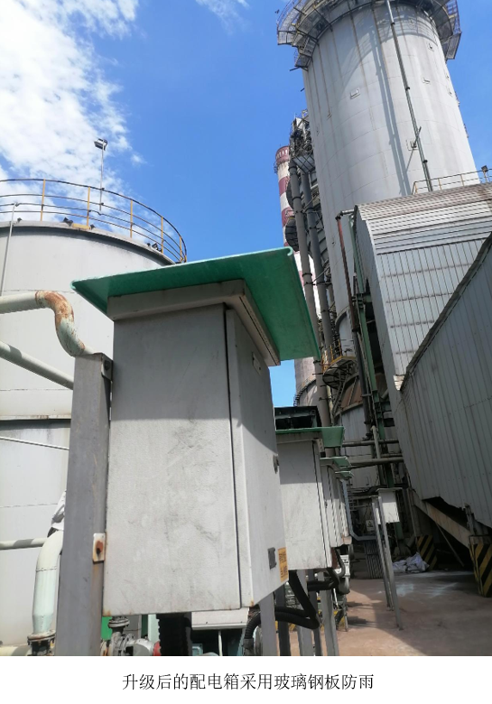 為了解決這一問(wèn)題,檢修班長(cháng)積極行動(dòng),經(jīng)過(guò)仔細研究和評估,提出采用玻璃鋼板替換原有塑料紙的方案。在向球團管理人員請示并獲得同意后,9 月 18 日,升級改造工作正式啟動(dòng)。檢修團隊克服了現場(chǎng)環(huán)境復雜、時(shí)間緊張等困難,于次日順利完成了全部改造工作。改造后的配電箱不僅整體美觀(guān)大方,而且玻璃鋼板的材質(zhì)使其具備了更強的防腐耐用性,同時(shí)也方便了工作人員開(kāi)啟配電箱門(mén)進(jìn)行日常檢查和維護。