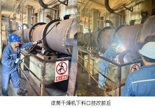 焦化提鹽項目承擔著(zhù)將廢水中的鹽類(lèi)物質(zhì)轉化為工業(yè)級副產(chǎn)鹽的重要任務(wù),干燥機作為焦化廢水資源化利用的關(guān)鍵環(huán)節,也是決定產(chǎn)品水分、純度與生產(chǎn)連續性的核心設備。為解決堵塞難題,10月10日,威遠澤天副總經(jīng)理組織生產(chǎn)技術(shù)和檢修班組骨干人員進(jìn)行現場(chǎng)調研與技術(shù)分析,結合現場(chǎng)設備設施實(shí)際情況,決定在干燥機下料滾筒位置增加兩根振打裝置,依靠?jì)炔夸撉驖L動(dòng)使壁面物料振動(dòng)落下,從而減少人工頻繁值守敲打,實(shí)現干燥出料連續運行。